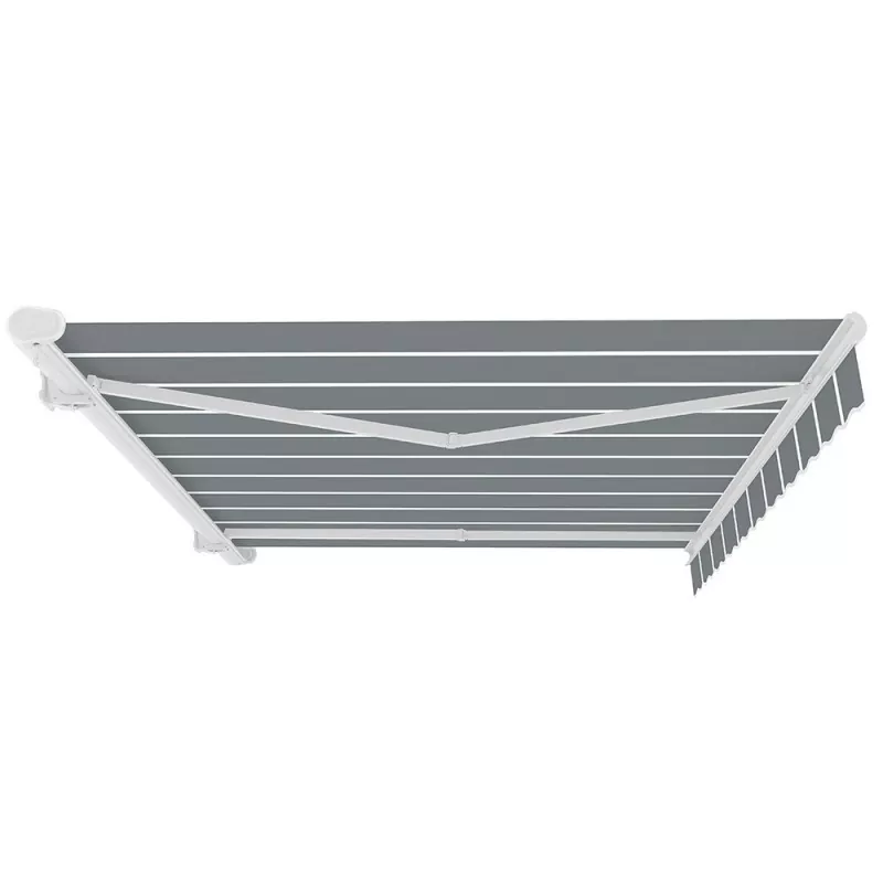 เสร็จสิ้นตามข้อกำหนดที่สูงมาก มีโครงโลหะน้ำหนักเบาที่แข็งแกร่งพร้อมแขนอะลูมิเนียมเคลือบสีฝุ่น สามารถเปิดและปิดได้อย่างง่ายดายและราบรื่นโดยใช้ที่จับหมุนทางด้านซ้ายมือ กันสาดสามารถเปิดได้มากหรือน้อยตามต้องการจนถึงระยะฉายภาพสูงสุด