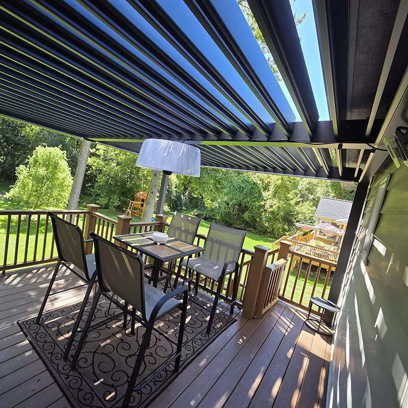 ซุ้มไม้เลื้อยของเรามีระแนงอะลูมิเนียมแบบปรับได้ ซึ่งช่วยให้ควบคุมแสงแดดและการระบายอากาศได้อย่างแม่นยำ ผสมผสานความสวยงามสมัยใหม่เข้ากับฟังก์ชันการใช้งาน ออกแบบมาเพื่อความทนทาน ต้านทานการกัดกร่อน และการบำรุงรักษาน้อยที่สุด Vionta pergolas สร้างพื้นที่กลางแจ้งที่สะดวกสบายตลอดทั้งปี