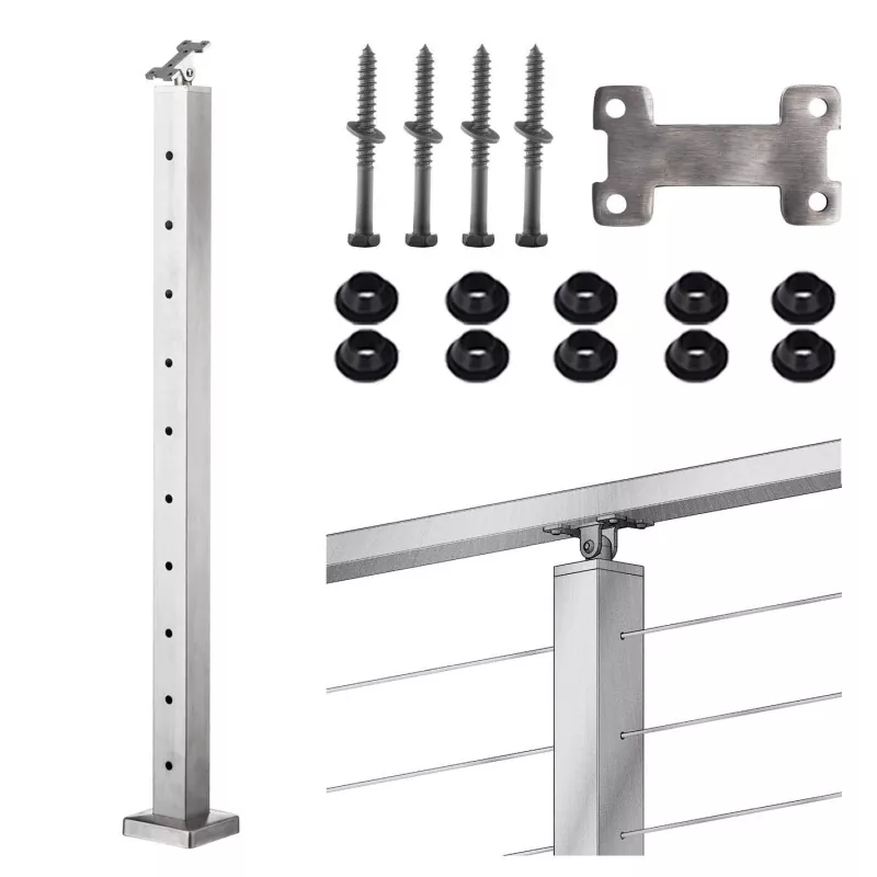 เสาและอุปกรณ์เสริม: ทั้งหมดใช้สแตนเลสเกรดเดียวกันกับลวด เพื่อให้มั่นใจว่าทั้งระบบมีอายุการใช้งานเท่ากัน และป้องกันความล้มเหลวของระบบเนื่องจากส่วนประกอบเพียงชิ้นเดียว